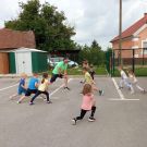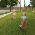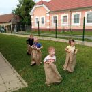Na vrtićkom igralištu igrali smo sportske igre: štafeta, nogomet, bacanje lopte u koš, skakanje u vreći… Provedene aktivnosti imale su za cilj upoznati djecu s pravilima ponašanja u sportu, važnosti bavljenja sportom, te kod djece razviti ljubav prema sportu.