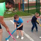 Djeca su s velikim oduševljenjem sudjelovala u aktivnostima s trenerom. Odradili su vježbe zagrijavanja, upoznali se s pravilima korištenja palice za hokej, te osnovnim pravilima igre.