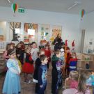 I ove smo godine obilježili ovaj veseli dan u našem vrtiću. Djeca su došla u vrtić kostimirana te im je ovaj dan bio posebno drag jer su imali mogućnost pretvoriti se u svoje najdraže likove (princeze, super junaci, pčelice, bubamare i mnogi drugi likovi). U odgojnim skupinama provodile su se različite aktivnosti (ples pod maskama uz prigodne pjesme, likovne aktivnosti…). Putem priča djeca su bila upoznata s običajima maskiranja u našem kraju (tjera se zima, priziva se proljeće). Djeca iz skupina Točkice i Balončići zajednički su otplesala ples pod maskama uz pjesmicu:
