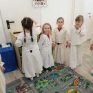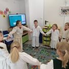 Skupina „Točkice“ uključena je u projekt „Say hello to the world“ koji se bavi temama upoznavanja sebe, svoje obitelji i vrtića, mjesta stanovanja i države u kojoj živimo. Uz to kroz međusobne video sastanke i podijeljene fotografije materijala i dječjih radova s partnerima iz drugih država uključenih u projekt, upoznajemo različitost drugih kultura i običaja. Tijekom travnja bavili smo se temom: moje mjesto gdje smo tjekom naše video prezentacije otplesali kolo obučeni u nošnje.