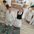Gledanje snimke plesa različitih kulturno-umjetničkih društva s istom glazbenom podlogom bila je motivacija djeci za osmišljavanje koraka naše koreografije koje su uz pomoć odgojiteljica objedinili u cjelinu i naposlijetku prezentirali.