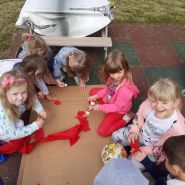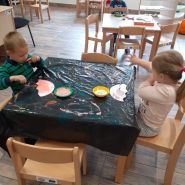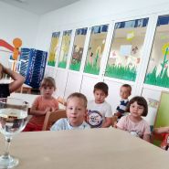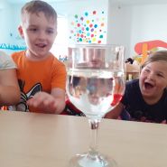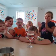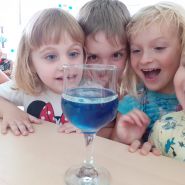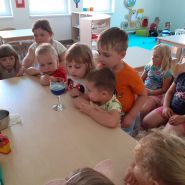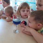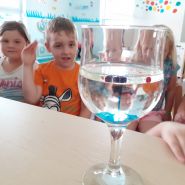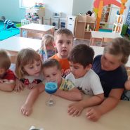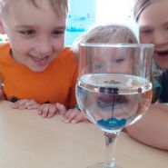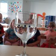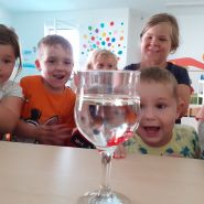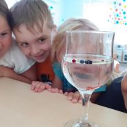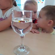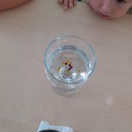 Danas smo odlučili “otploviti” u znanstvene vode. Postali smo pravi mali kemičari. Naučili smo miješati boje na zanimljiv način. S tetom smo izveli pokus gdje smo strpljivo i sa zanimanjem pratili sve promjene koje se zbivaju. Za pokus su nam trebali: čaša, obična voda, ulje, prehrambene boje i malo dobre volje.