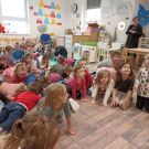 Povodom obilježavanja mjeseca dječje knjige u srijedu 29. ožujka posjetili su nas članovi Udruge SVIMA iz Zagreba u sklopu projekta Dječji klub Visoko. S velikom znatiželjom djeca su poslušala pjesmicu autora Luke Paljetka iz zbirke pjesama „Miševi i mačke naglavačke“. Nakon pročitanih stihova glumac Umjetničke organizacije Gllugl iz Varaždina Jura Ruža izveo je zajedno s djecom igru dramatizacije. Djeca su gestama, pokretima tijela i mimikom lica izrazila doživljaj pročitane pjesme. Zajedničkoj igri pridružila su se djeca iz Male škole Bedenica. U znak dobrodošlice folklorno-glazbena skupina izvela je nekoliko narodnih plesova, a zajedno smo otpjevali pjesmice „Proljeće“ i „Kad si sretan“. Posjet našem vrtiću završio je zajedničkim čašćenjem, igrom i druženjem.