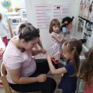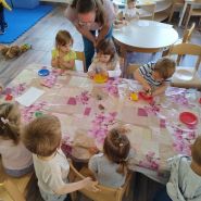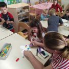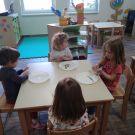Neka djeca su otišla na igru u centre aktivnosti dok su neki još bojali, lijepili, oblikovali. Tako su u frizerskom centru, djeca tetu Vlatku pozvala na frizuru, a u obiteljskom pripremili su doručak za sve prisutne. U skupini je vladala opuštena, suradnička atmosfera zajedništva. Zahvaljujemo teti Vlatki, mami Mateji, tati Dariju sto su si dopustili da ponovo budu djeca i uljepšali nam dan svojim dolaskom. Zahvaljujući njima i dječjem interesu za aktivnost dan nam je protekao u ugodnom i radnom druženju.