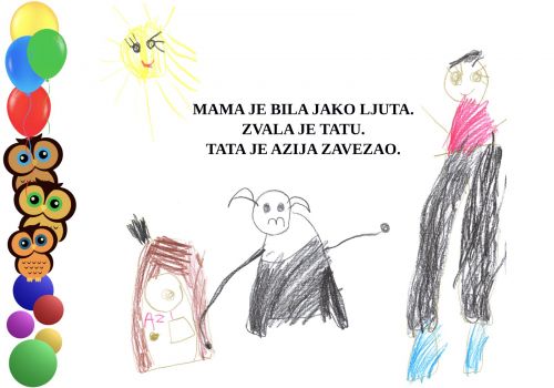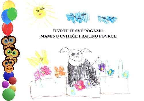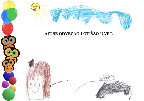 Tijekom igre djevojčica Marta spontano je počela pričati svojoj prijateljici Luciji događaj koji se dogodio prethodnog dana. Naime, radilo se o njezinom psu Aziju koji je njezinoj mami pogazio cvijeće koje je posadila u vrtu. Kako je Marta vrlo uzbuđeno i slikovito pričala o tom događaju zamolili smo je da događaj podijeli sa svima u skupini, što je ona vrlo rado i učinila.